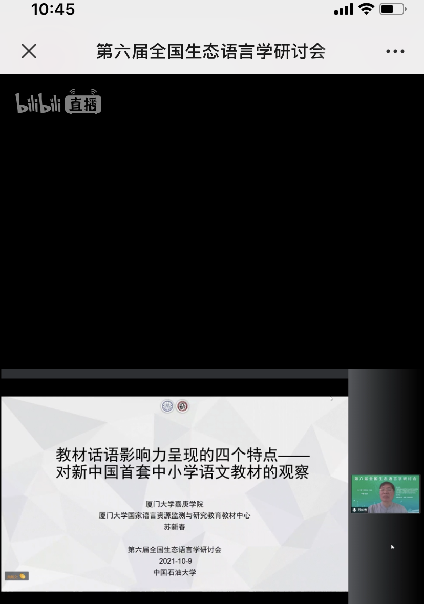 为进一步推动我国生态语言学研究发展,更好地服务于新时代生态文明建设需求,中国英汉语比较研究会生态语言学专业委员会于2021年10月9日至10日在线上举办第六届全国生态语言学研讨会。我中心主任苏新春教授受邀出席,并在10月9日第一天上午的会议上做主旨报告。