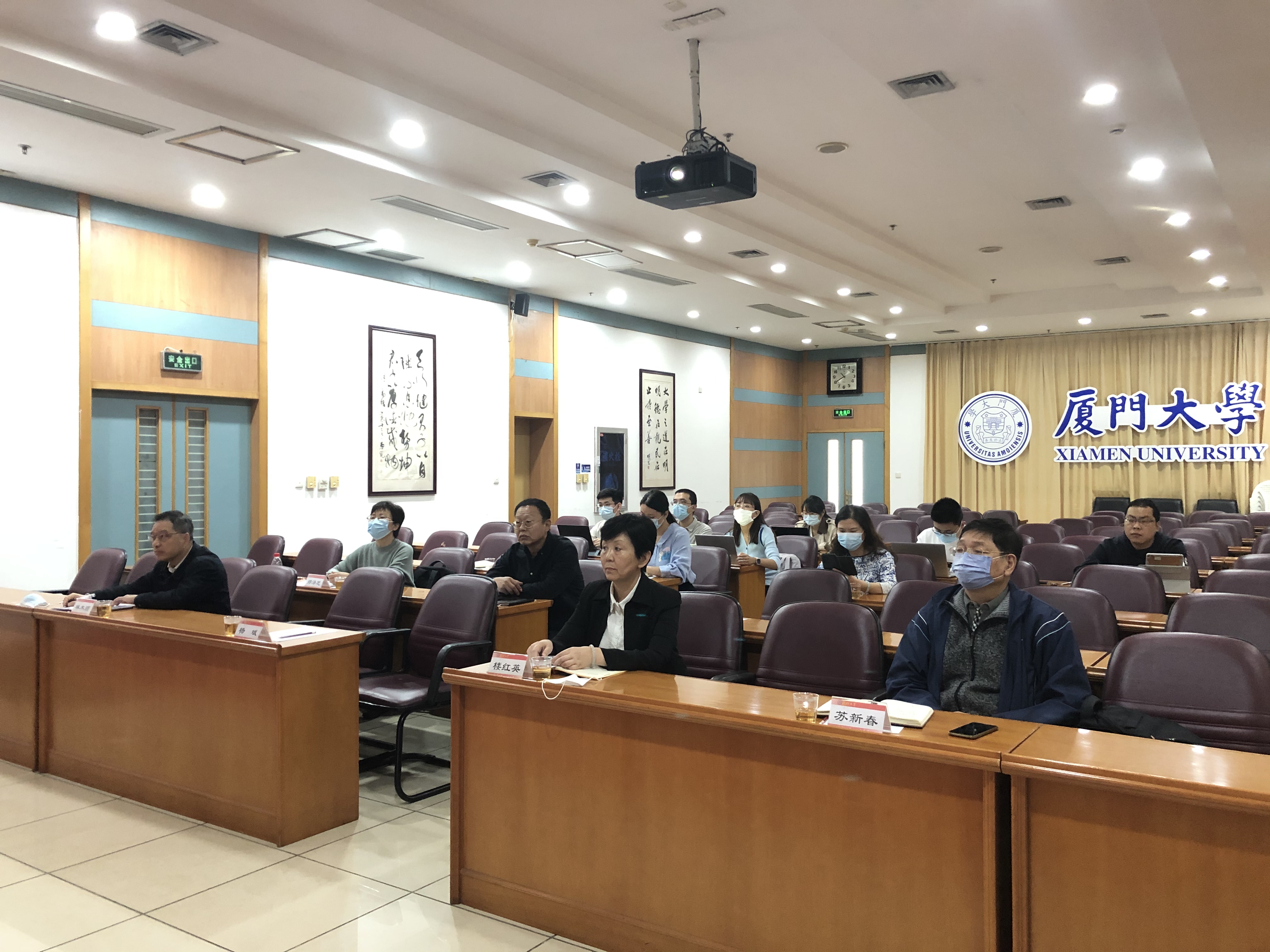 国家语委“十四五”科研工作会议于11月9日召开。我校在颂恩楼220会议室设置了分会场并组织相关单位人员收听收看了大会,厦门大学语言文字工作委员会副主任、校宣传部副部长楼红英、厦门大学社会科学研究处副处长林木顺、厦门大学国家语言文字推广基地秘书吴志友等学校相关部门领导出席了会议,厦门大学国家语言资源监测与研究教育教材中心主任苏新春教授、副主任郑泽芝教授等教材中心师生代表参加了会议。