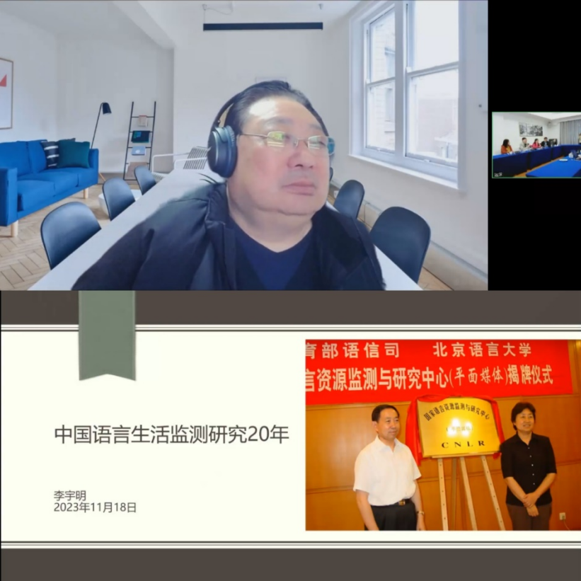 18日上午,苏新春教授主持开幕式,热情欢迎各位专家学者的到来,并简要回顾了本次论坛发起的缘由与过程。随后,李宇明教授进行了题为《中国语言生活监测研究20年》的开幕致辞,全面详尽回顾了中国语言生活监测研究从无到有、从少到多、从小到大的二十年发展历程。中国语言资源、语言生活研究在我国学者同仁们的共同努力下,取得了举世瞩目的丰硕成果,不光建立起一个完善的语言资源监测与研究平台体系,更依托这样有组织的学术共同体,深入记录、梳理、贮存了中国语言生活的真实状况,为多领域的语言研究贡献了最基础也是最真实的语言资源。这些研究同时从资政惠民角度发挥重要作用,推动语言生活、语言资源监测的学科建设。展望未来,我们将继续探索更多可能性,为中国语言生活水平的提高做出更大的贡献。
