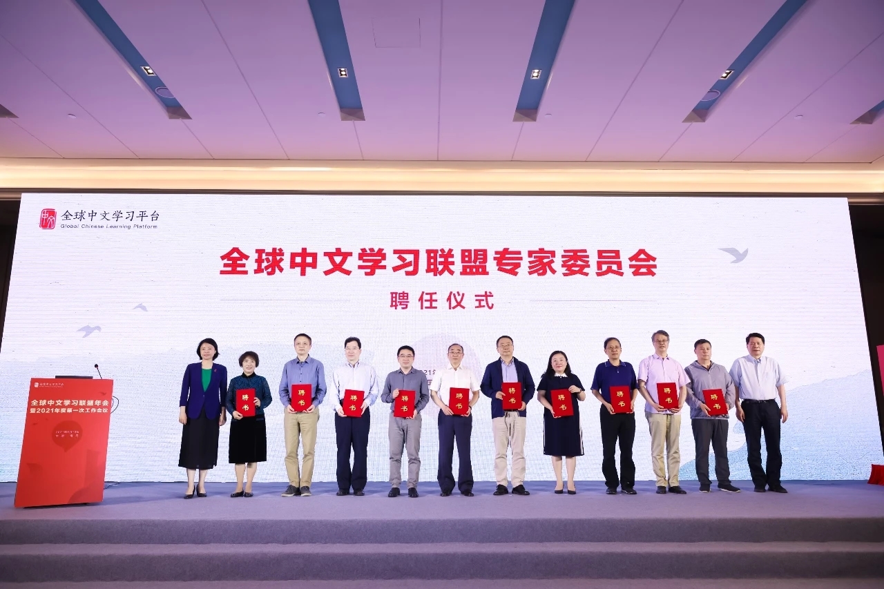 为推动联盟及平台的建设规划、资源研发、课题研究等工作,联盟成立专家委员会,由相关高校、科研院所、企事业单位等机构资深专业人士组成,包括语言学、语言教学、教育学、人工智能、大数据等多学科领域专家。会上,田立新、郑旺全为专家代表颁发证书。
