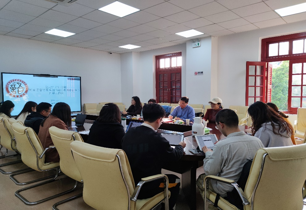 2022年3月3日,我教育教材中心2021-2022第二学期第一次工作会议在人文学院南光楼301-1会议室召开,中心主任苏新春教授、副主任郑泽芝教授、副主任杜晶晶教授、第一研究室主任李焱教授、副主任孙园园教授、第二研究室主任金美副教授、第三研究室副主任赵怿怡副教授等教材中心师生出席会议。会议主要围绕2022年度工作计划汇报、中心成果汇总节点调整、协助语信司对口帮扶工作、中心日常运营与管理等数个议题展开,由杜晶晶主持会议。