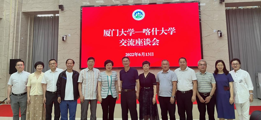 近日,厦门大学党委常委、副校长邓朝晖一行来喀什大学考察交流,看望援派到喀什大学的两位银龄教师。喀什大学党委常委、副校长罗浩波出席座谈会,相关学院和部门负责人参加座谈。