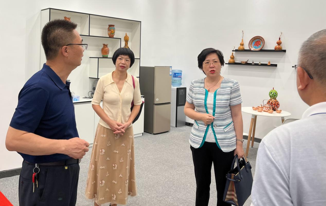 在校期间,邓朝晖一行在新泉校区实地参观考察了自然博物馆,中华优秀传统文化体验传承基地,美术与设计学院师生书画作品展、陶艺工作室、疆绣工作室。