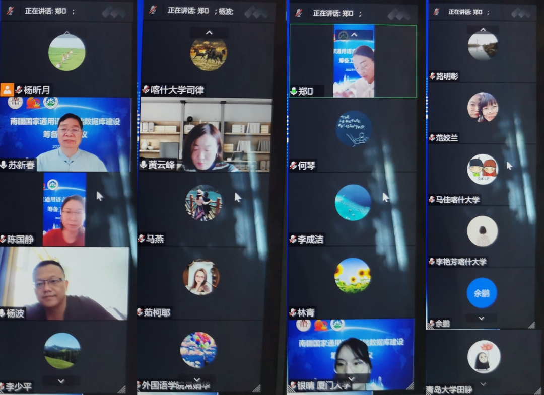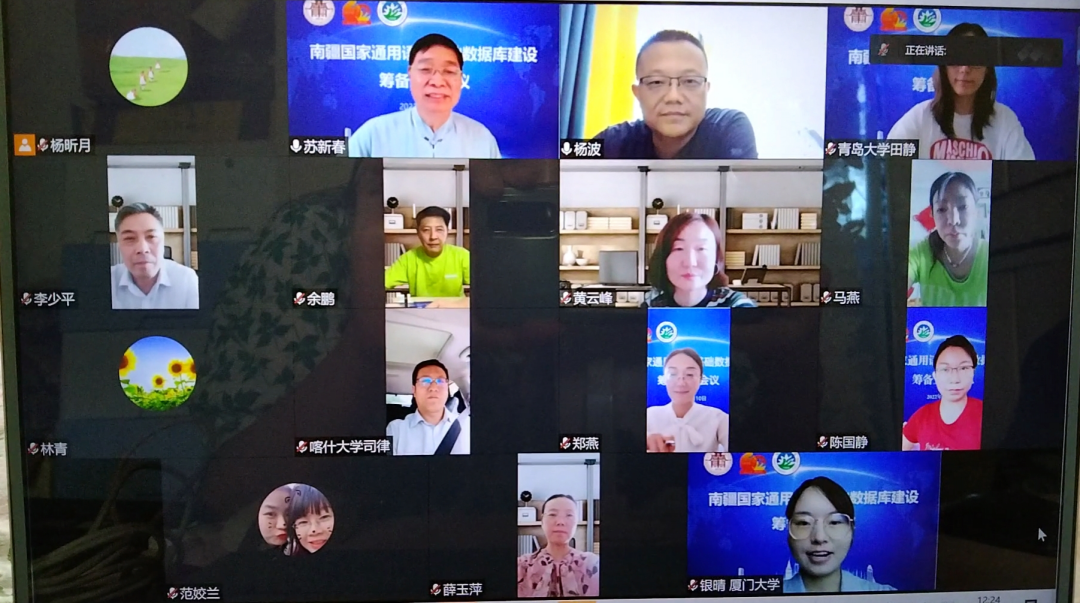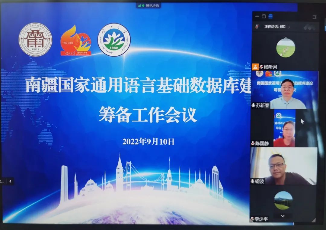近日,喀什大学召开南疆国家通用语言基础数据库建设筹备工作会议。我校银龄教师苏新春教授,科研处、人文学院、中国语言学院、外国语学院、南疆教育发展研究中心、喀什大学新疆中华民族多元一体格局历史与文化研究中心相关负责人和教师代表,厦门大学,青岛大学教师代表共16人线上参加了南疆国家通用语言基础数据库建设筹备工作会议。