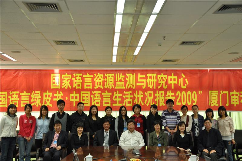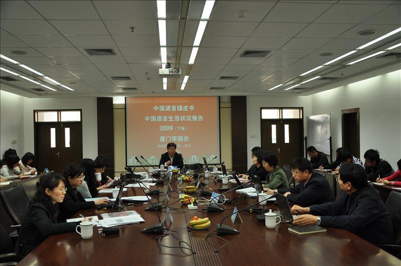 3月20日上午,国家语言资源监测与研究中心“中国语言绿皮书?中国语言生活状况报告(2009)(下编)”厦门审稿会在厦门大学嘉庚学院主楼群三号楼七楼会议室召开。教育部语言文字信息管理司副司长王铁琨,教育部语言文字信息管理司规范协调处处长陈敏,中国传媒大学教授、语言研究所所长、有声媒体语言分中心主任侯敏,北京语言大学教授、应用语言学研究所所长、平面媒体语言分中心主任杨尔弘,华中师范大学教授、计算机系主任、网络语言分中心主任何婷婷,中央民族大学教授、少数民族语言分中心主任赵小兵及我中心主任苏新春等11位专家出席了审稿会,就2009年的语言生活状况报告展开了热烈讨论。会议经过两天四场的报告讨论,于3月21日下午顺利落幕。