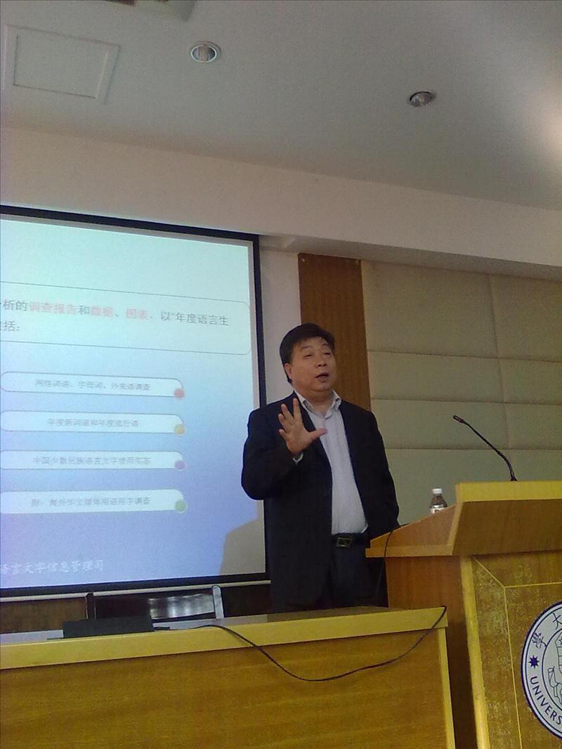 报告吸引了众多师生。王副司长的亲切和蔼也让现场气氛轻松、热烈。他说,他是我们中心的“老朋友”了。而这“老朋友”的身份并未让报告后的提问的尖锐度减上半分。有新闻学院学生就汉语与外来语的关系向王副司长提问:如何看待外来语在媒体中的使用?国家语委如何打这场汉语保卫战?谁将负更大的使命?中文系学生则问到,国家五年来的语言监测成果显著,但应该怎么进一步利用、共享?王副司长针对种种问题作了客观而深入、严肃又不乏风趣的回答。